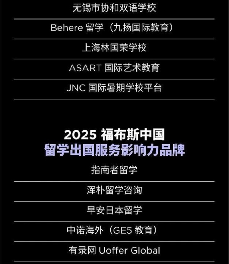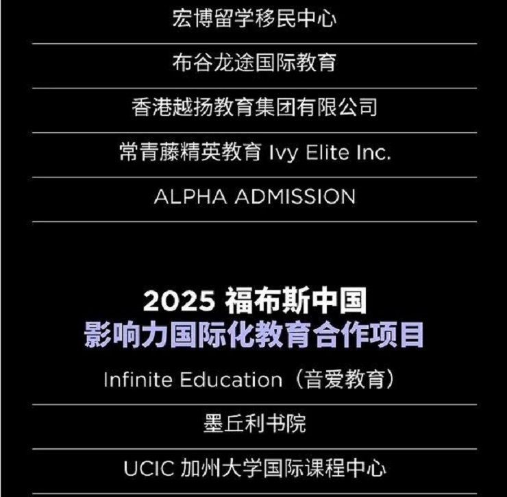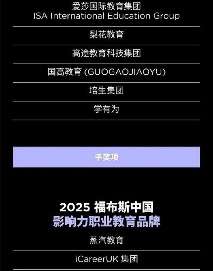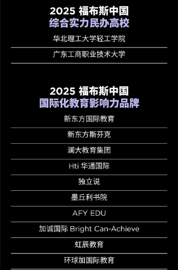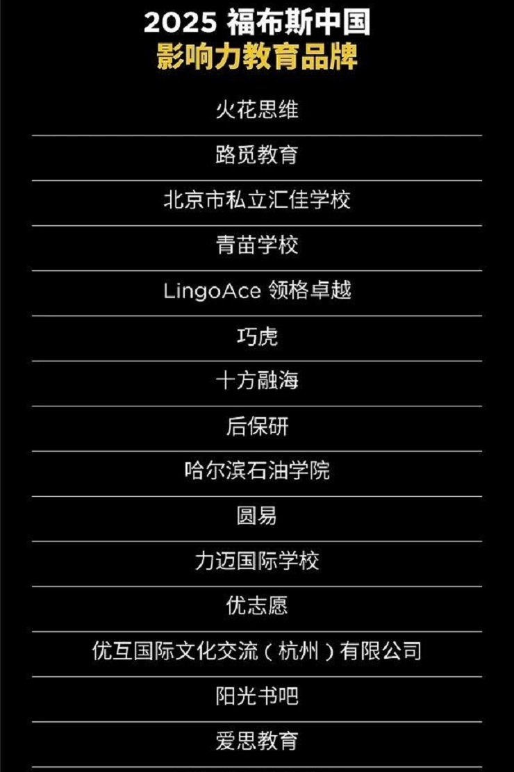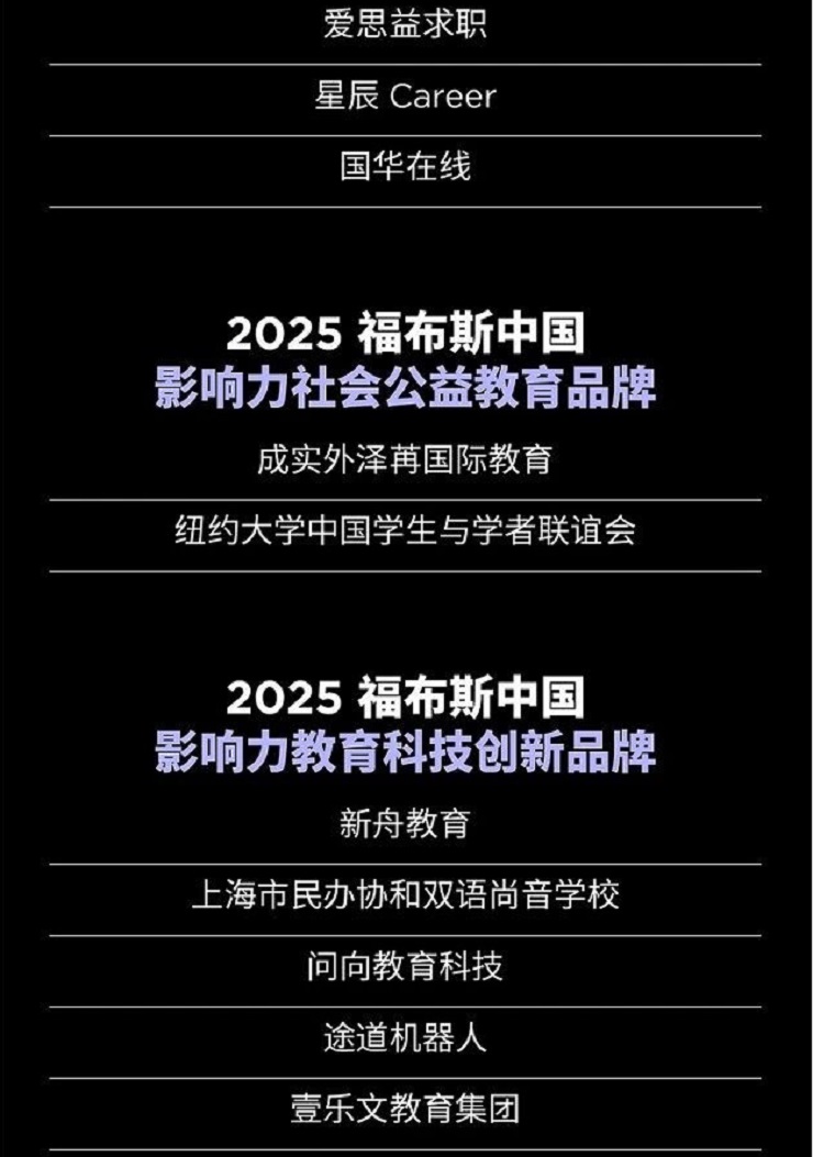 以下是“2025福布斯中国教育行业评选”结果: