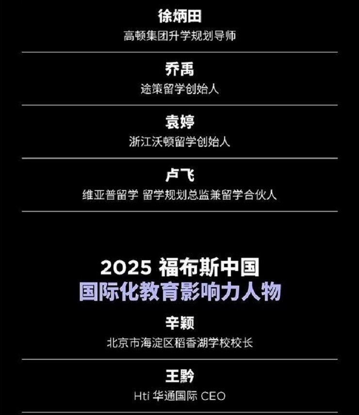 荣获【福布斯中国国际化教育影响力人物】的获奖者有: