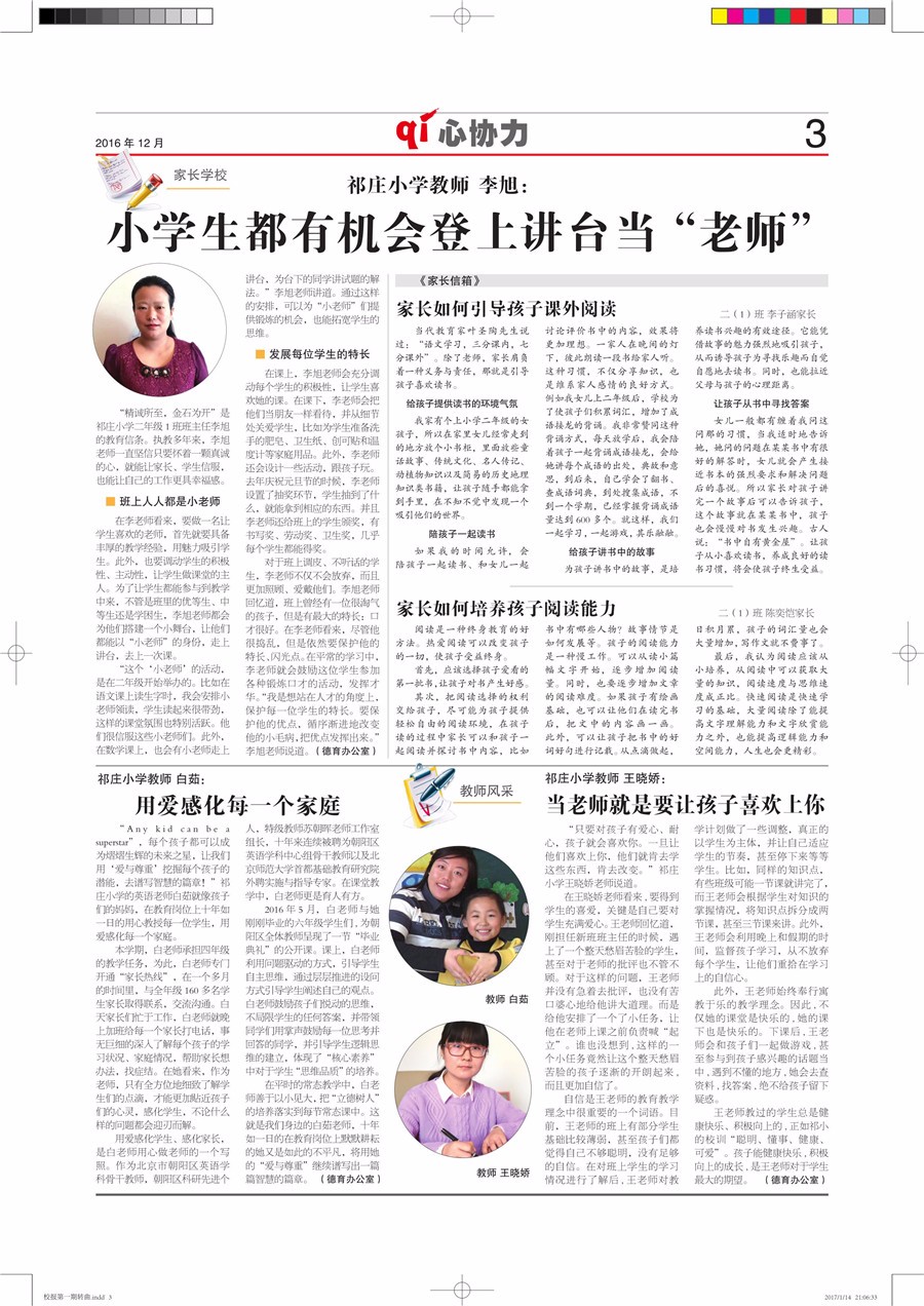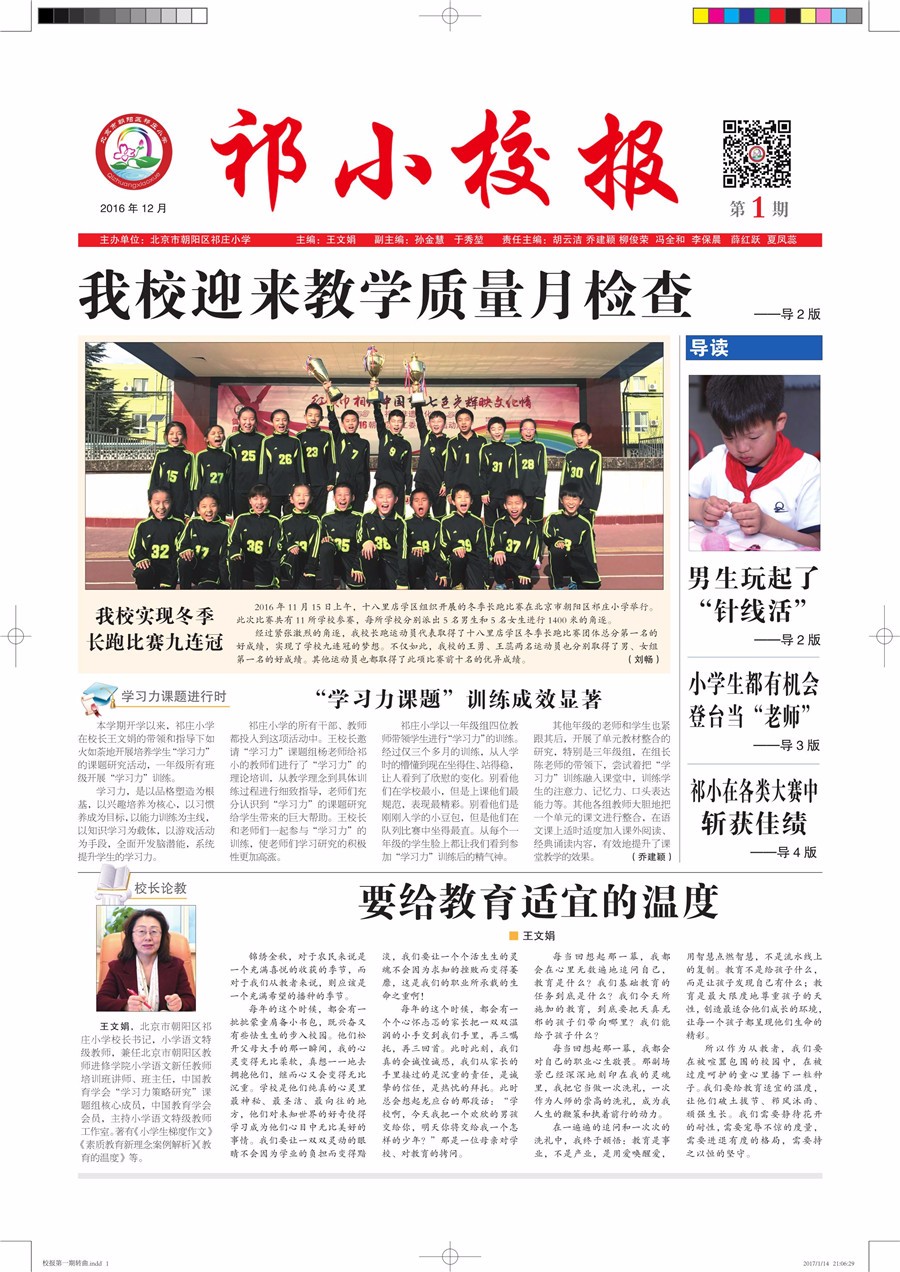 北京市朝阳区祁庄小学校报 当前位置:首页 > 学校专题 > 北京市朝阳区祁庄小学校报 祁庄小学校报第一期 来源:教育头条 | 时间:2017-08-27 17:40:10 导读:祁庄小学校报第一期。 TAG标签: 上一篇:祁庄小学校报第二期 今日热点 人气关注 祁庄小学校报第一期 2祁庄小学校报第二期 3祁庄小学校报第四期 4祁庄小学校报第三期 5祁庄小学校报第五期 6祁庄小学校报第六期