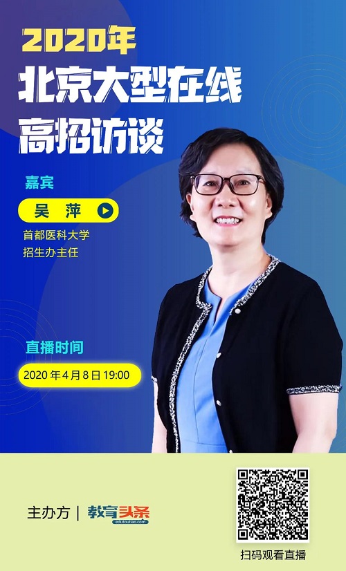 导读:4月8日首都医科大学招生办主任吴萍将做客《教育头条》视频直播间!