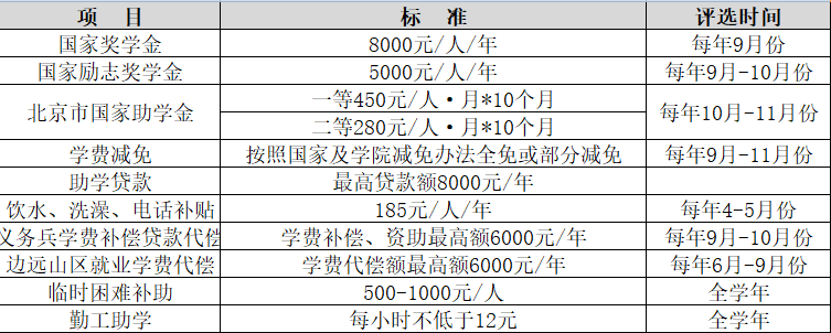 学校的校长奖学金10000元/人/年,一等学生奖学金3000元/人/年,二等学生奖学金2000元/人/年,三等学生奖学金1000元/人/年,评选时间是每年10-11月份。