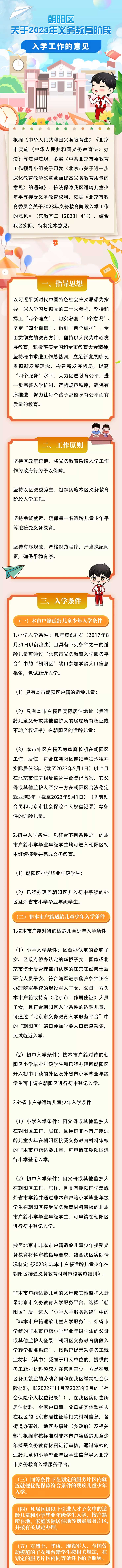 头条播报 当前位置:首页 > 头条播报 朝阳区2023年义务教育阶段入学工作意见发布 来源:朝阳区教育考试中心 | 时间:2023-04-26 17:12:25 导读:4月26日,朝阳区教育考试中心发布关于2023年义务教育阶段入学工作的意见。 编辑 | 毛玉琦 王萌校对 | 张心惠 TAG标签: 上一篇:北京西城小学全区招生学校增至12所 下一篇:西城区2023年义务教育阶段入学工作实施意见发布 今日热点 人气关注 2026年北京高考报名25日开始! 22025京津冀大型在线高招咨询会高校直播排期—天津专场(附直播链接) 32025京津冀大型在线高招咨询会高校直播排期—北京专场(附直播链接) 4厉害了!高校高端实验室“搬”进北京中小学 5中国教育科学论坛(2025)在京开幕 6北京市委决定:王攀任北京建筑大学党委书记 7马怀德同志任中国人民大学校长 8“十五五”里的北京教育红利 9教育部等5部门发布20条举措,实施学生体质强健计划 106大重点任务!教育部等7部门发文部署加强中小学科技教育 重磅 | 2022京城百所特色校榜单揭晓 2北京市优秀教师和优秀教育工作者拟表彰人选出炉 32023年北京大型在线中招咨询会直播时间表(实时更新) 4北京市第八十中学落户大兴 5北京优质教育资源持续上新,涉及多区教育集团 6北京大学与大兴区第一中学大中衔接拔尖创新人才培养项目正式启动 7教育部部署做好2024年普通高校招生工作 8北京42所中学2020年中考成绩分类汇总! 9重磅!北京十二中书记校长调整! 10初中生表演情景剧再现“一带一路”