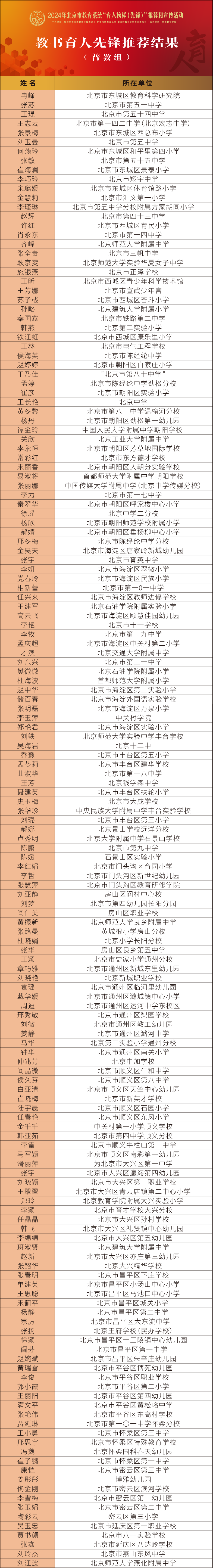 2024年北京教育系统“育人榜样(先锋)”推荐结果出炉