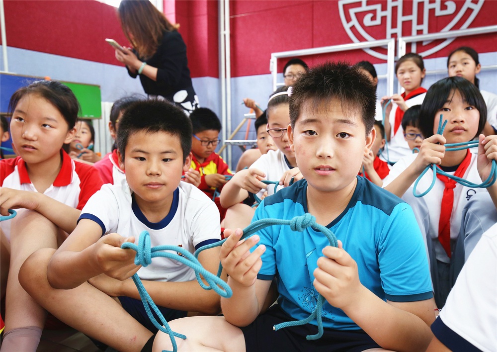 学校针对不同年龄学生身心特点以及日常生活中可能遇到的危险及意外伤害设定了四大活动项目,分别是“野外生存技能之搭建庇护所”“生存技能之打绳结”“创伤救护之包扎”“灾难逃生体验”。在教官的引领下,同学们使用立杆、防雨布、尼龙绳等学习搭建简易帐篷以及逃生绳结打法,借助三角巾、绷带对伤员进行包扎,甚至进入灾难体验屋切实体验了一把灾害发生时,快速从建筑物内逃生的方法。