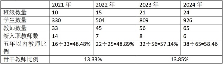 学校由2021年10个教学班增至24个教学班,330名学生增至926名学生,33名教师增至65名教师。每一个数字的变化,既是学校历史的前进,更是教师不断为之拼搏的动力,走过的每一步都是我们深度合作的印记。