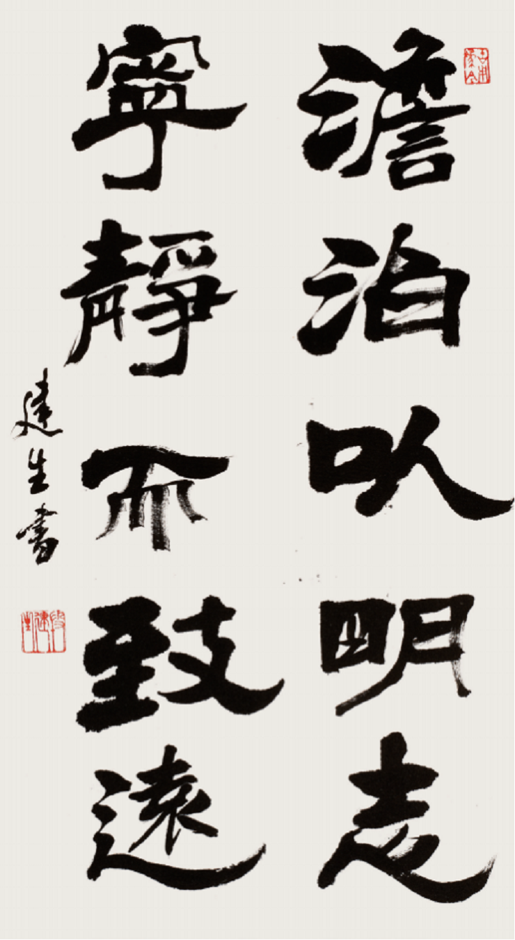 及至近现代,此脉传承未曾间断。北京四大名医之一的肖龙友,除医术高明外,诗词书画皆精,书法诸体兼备,技艺炉火纯青,世人常将其诊病墨案视若珍宝;中医大家程门雪,诗、书、画并称“三绝”,其医案与书法作品尽显深厚学养。当代实践者中,罗健以书法传播中医典籍,谢忠伟融中医“气血”之理于榜书创作,张校笙承仲景之学兼修书艺,共同延续着书医交融的传统。而段建生先生,正是当代这一传承脉络中一位杰出的践行者。