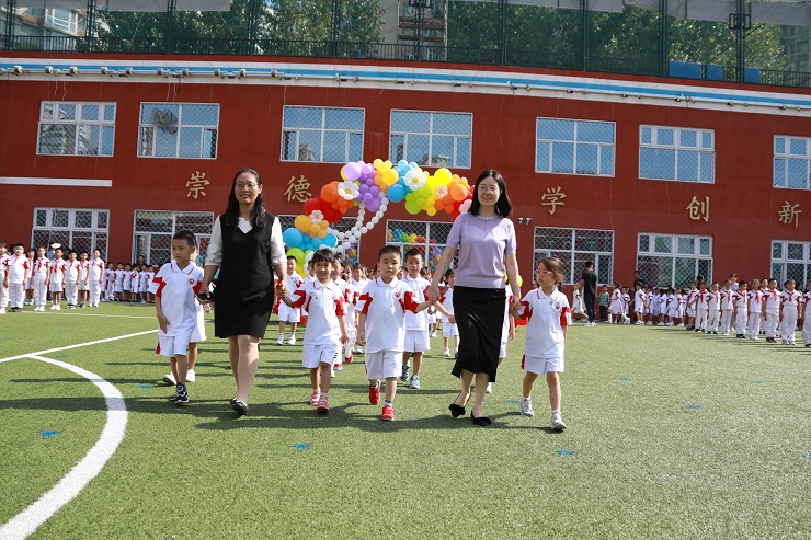 张冬梅校长在典礼上对一年级的新同学表示欢迎,并为全校师生送上了亲切的祝福:希望孩子们能够快乐健康成长,祝福老师们工作顺利。
