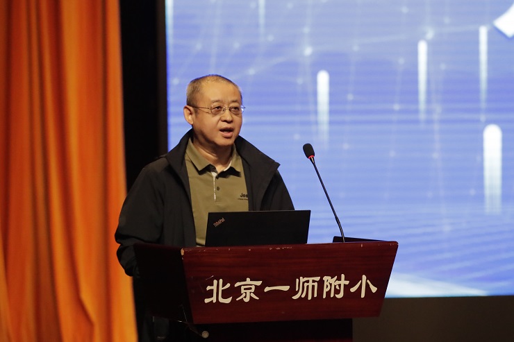 北京第一师范学校附属小学校长狄永杰在开幕式以《快乐教育+人工智能 助力创新人才培养》为题作主题发言,分享了北京第一师范学校附属小学近年来在人工智能教育教学方面的实践与收获。