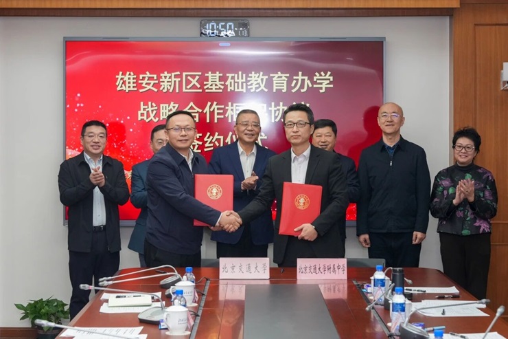 2026年1月13日上午,北京交通大学与北京交通大学附属中学在北京交大思源楼隆重举行“京雄基础教育合作办学战略协议”签约仪式。此次合作是双方贯彻落实国家雄安新区教育协同发展战略部署,响应《京津冀教育协同发展行动计划(2023—2025年)》等政策要求的重要举措,标志着京雄两地交大附中教育协同发展、携手共建、联手打造新型集团化办学模式迈入实质性推进阶段。