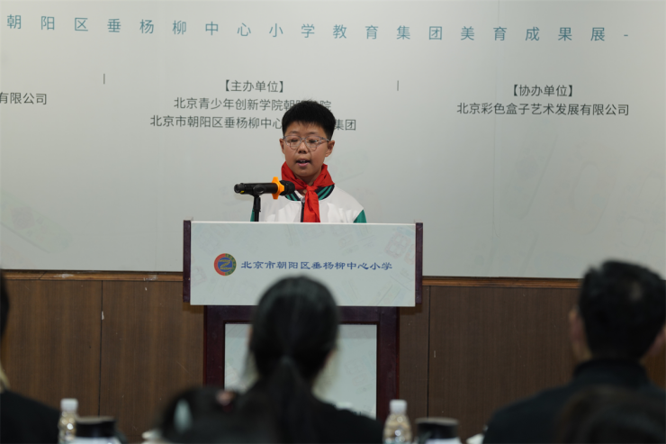 活动伊始,垂杨柳中心小学教育集团校长宋为代表主办方致辞。他系统阐述了学校美育工作的顶层设计与深层思考,着重强调将中华优秀传统文化融入校园美育实践的重要意义,详细分享了学校从美育理念到具体行动的扎实探索历程,彰显了让传统文化在校园落地生根、与儿童创想碰撞出创新火花的坚定决心,也传递出学校“以美育人、以文化人”的育人初心。